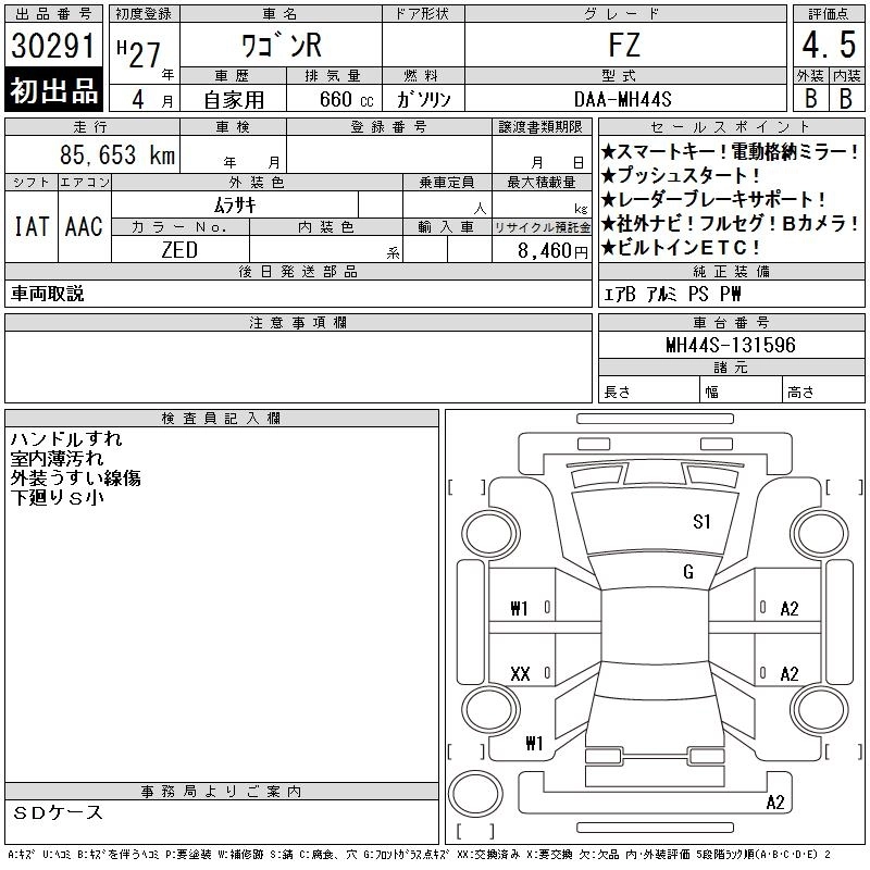 SUZUKI WAGON R 2015 г., лот № 30291