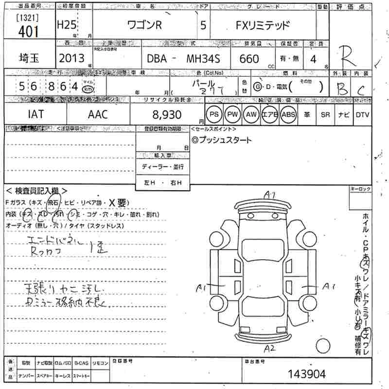 SUZUKI WAGON R 2013 г., лот № 401