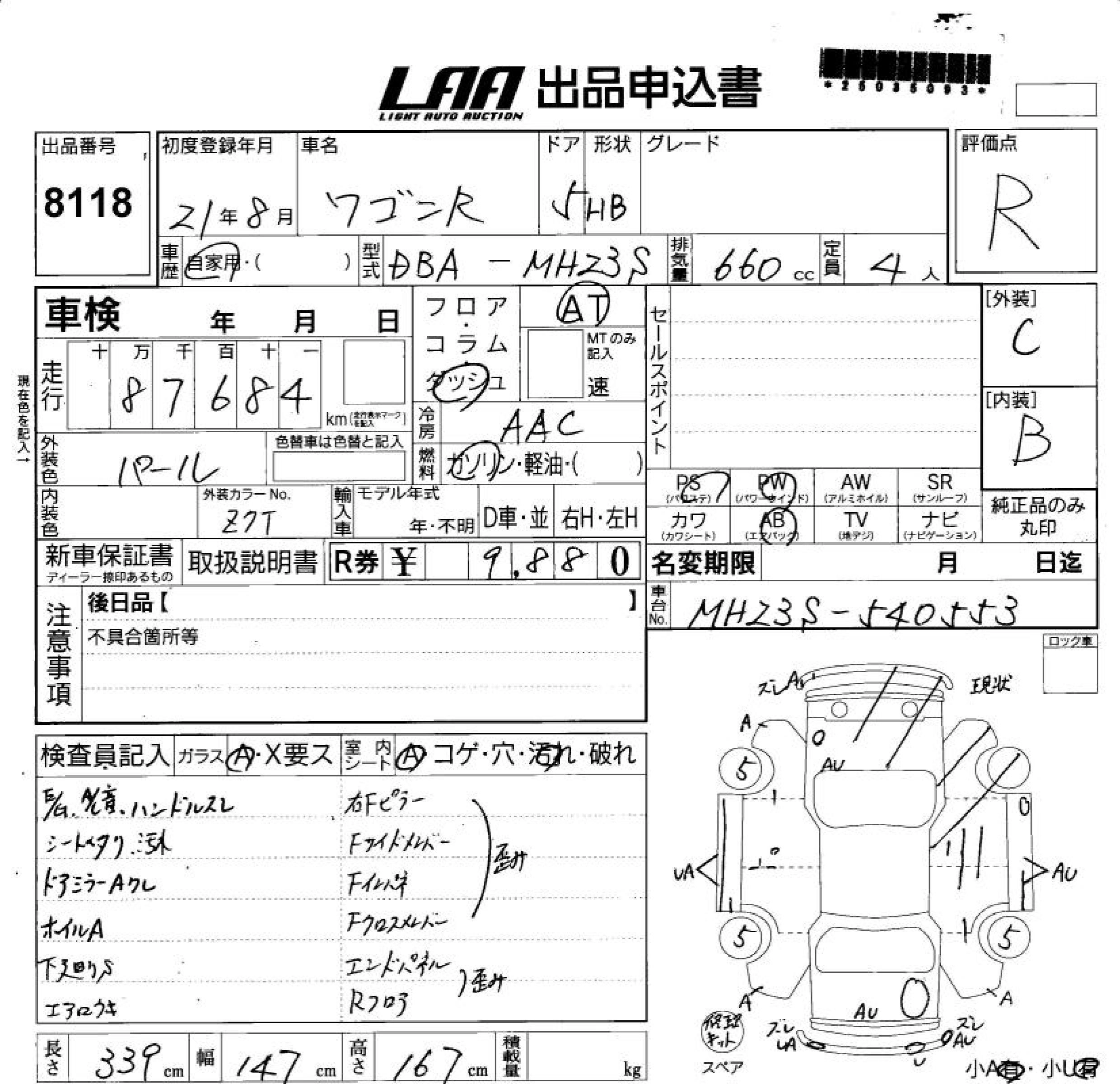 Год выпуска2009 Пробег 88 000 км КузовMH23S