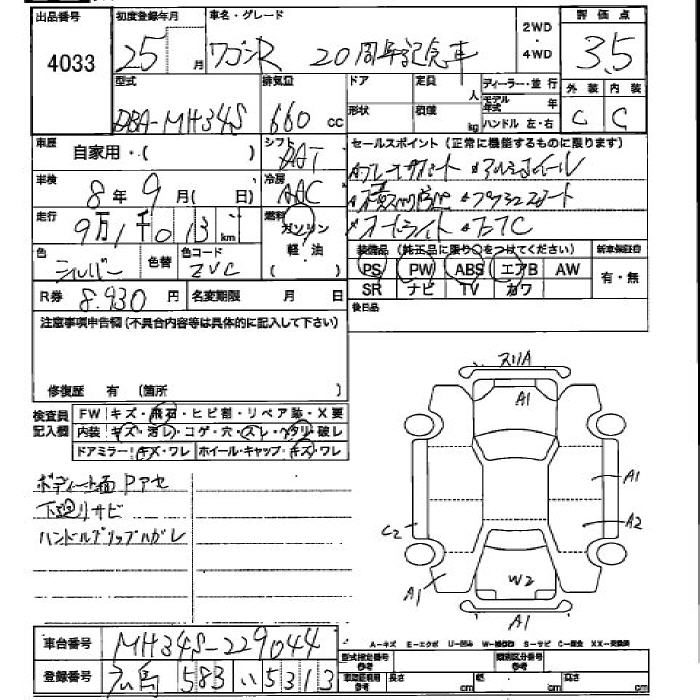 SUZUKI WAGON R 2013 г., лот № 4033