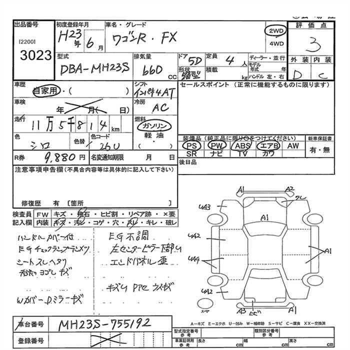 Год выпуска2011 Пробег 116 000 км КузовMH23S КомплектацияFX