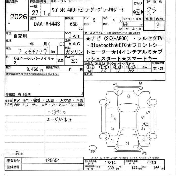 Год выпуска2015 Пробег 76 000 км КузовMH44S Комплектация4WD FZ RADAR BRAKE SUPPORT