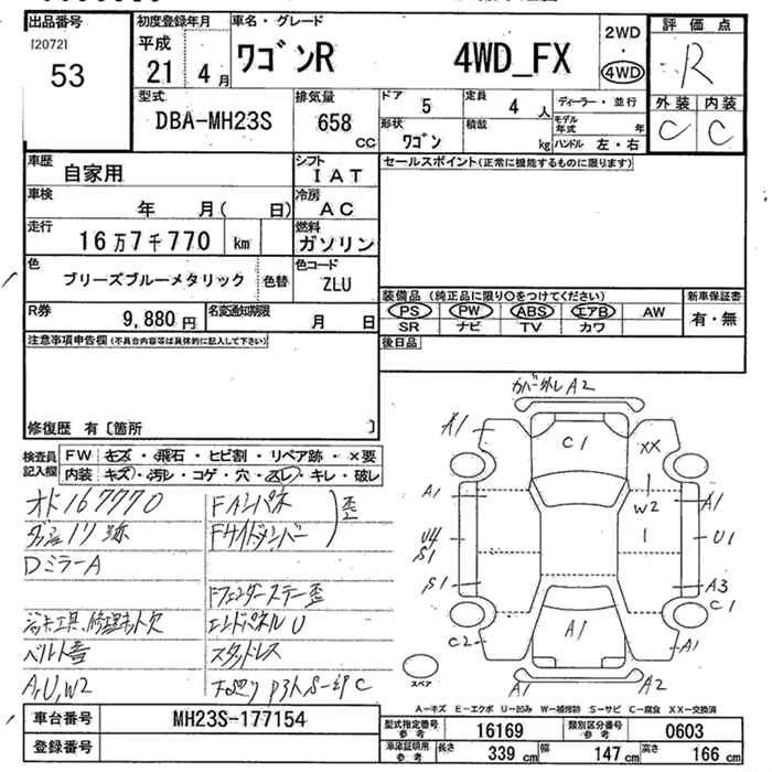SUZUKI WAGON R 2009 г., лот № 53