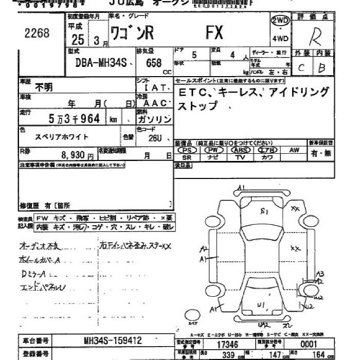 SUZUKI WAGON R 2013 г., лот № 2268
