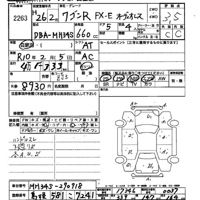 Год выпуска2014 Пробег 41 000 км КузовMH34S КомплектацияFX-E WITHOUT AUDIO