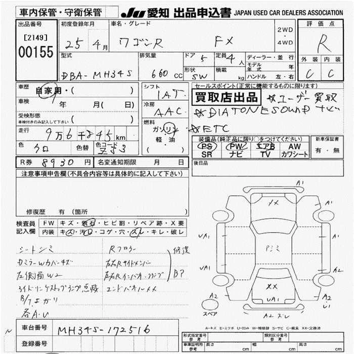 SUZUKI WAGON R 2013 г., лот № 155