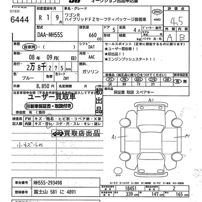 SUZUKI WAGON R 2019 г., лот № 6444