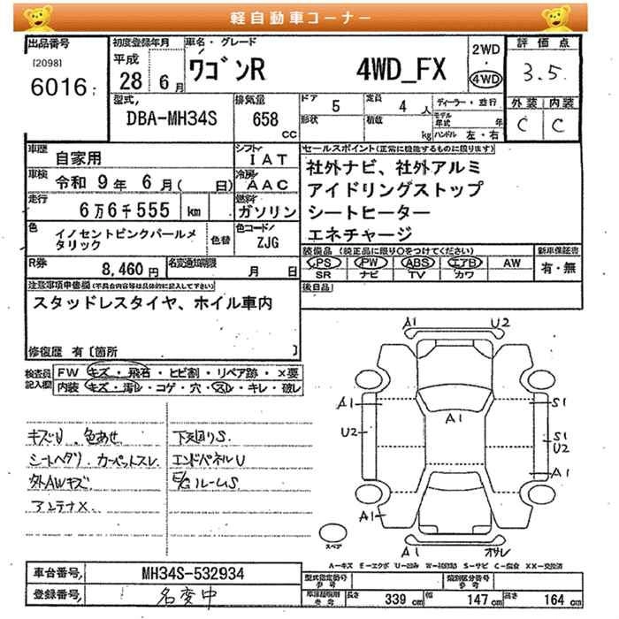 SUZUKI WAGON R 2016 г., лот № 6016