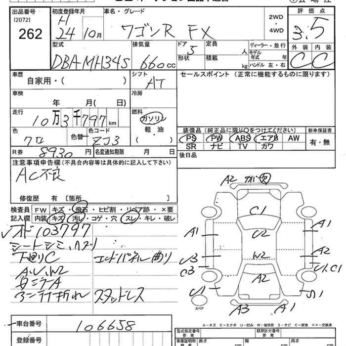 SUZUKI WAGON R 2012 г., лот № 262
