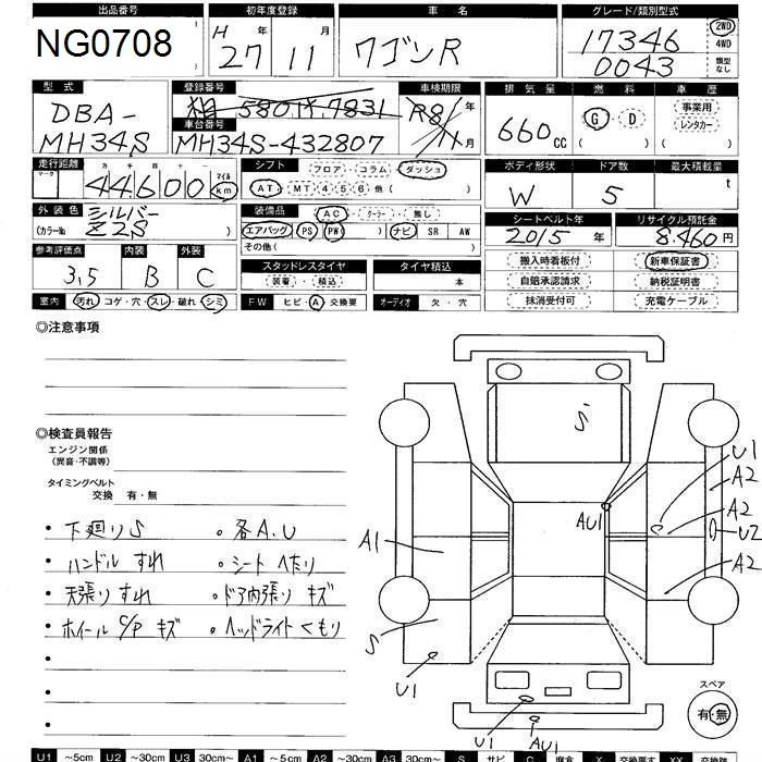 SUZUKI WAGON R 2015 г., лот № 708