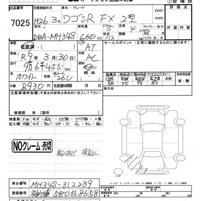 Статус выставлен на аукцион Лот 7025 Аукцион JU Chiba Дата аукциона 13.03.2026