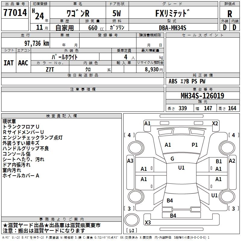 SUZUKI WAGON R 2012 г., лот № 77014