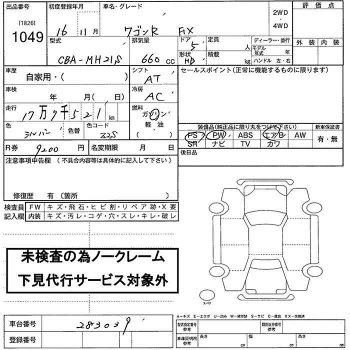 SUZUKI WAGON R 2004 г., лот № 1049