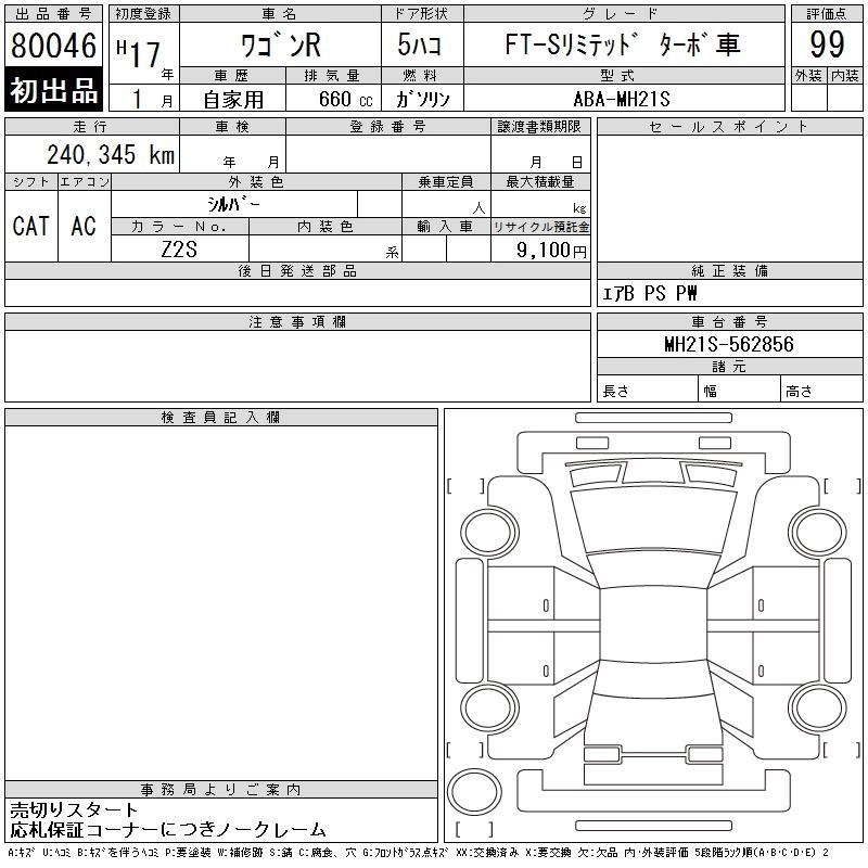 SUZUKI WAGON R 2005 г., лот № 80046