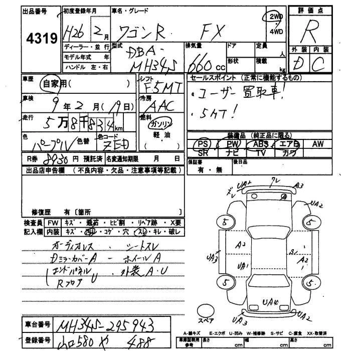 SUZUKI WAGON R 2014 г., лот № 4319