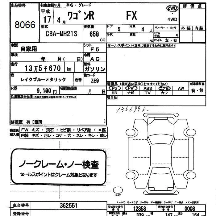 SUZUKI WAGON R 2005 г., лот № 8066