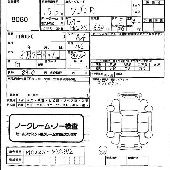 SUZUKI WAGON R 2003 г., лот № 8060