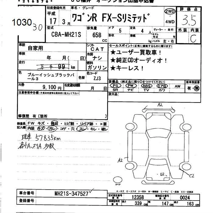 Год выпуска2005 Пробег 58 000 км КузовMH21S КомплектацияFX-S LIMITED