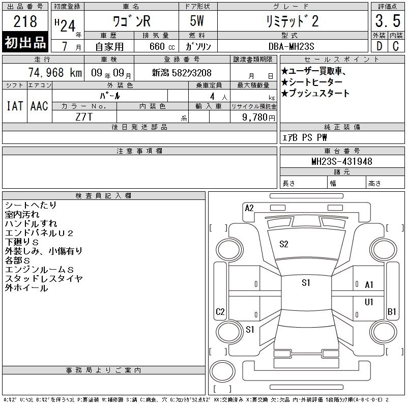 Год выпуска2012 Пробег 75 000 км КузовMH23S Комплектация LIMITED 2
