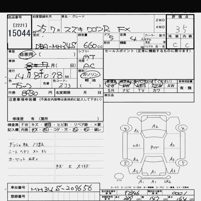 SUZUKI WAGON R 2013 г., лот № 15044
