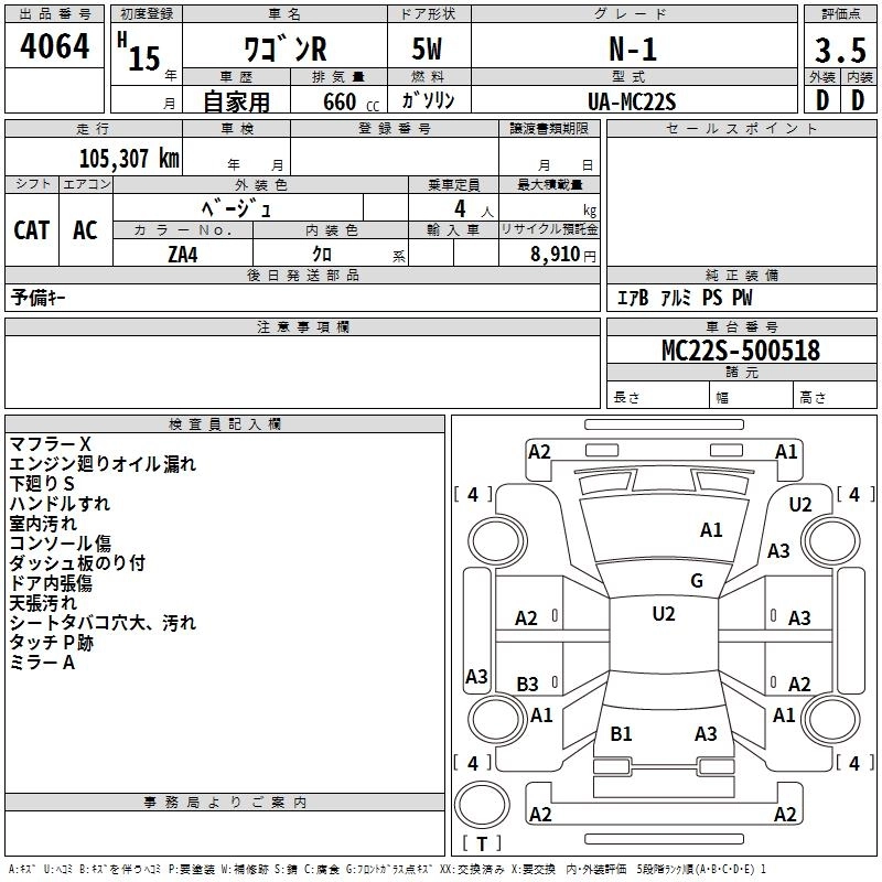 SUZUKI WAGON R 2003 г., лот № 4064