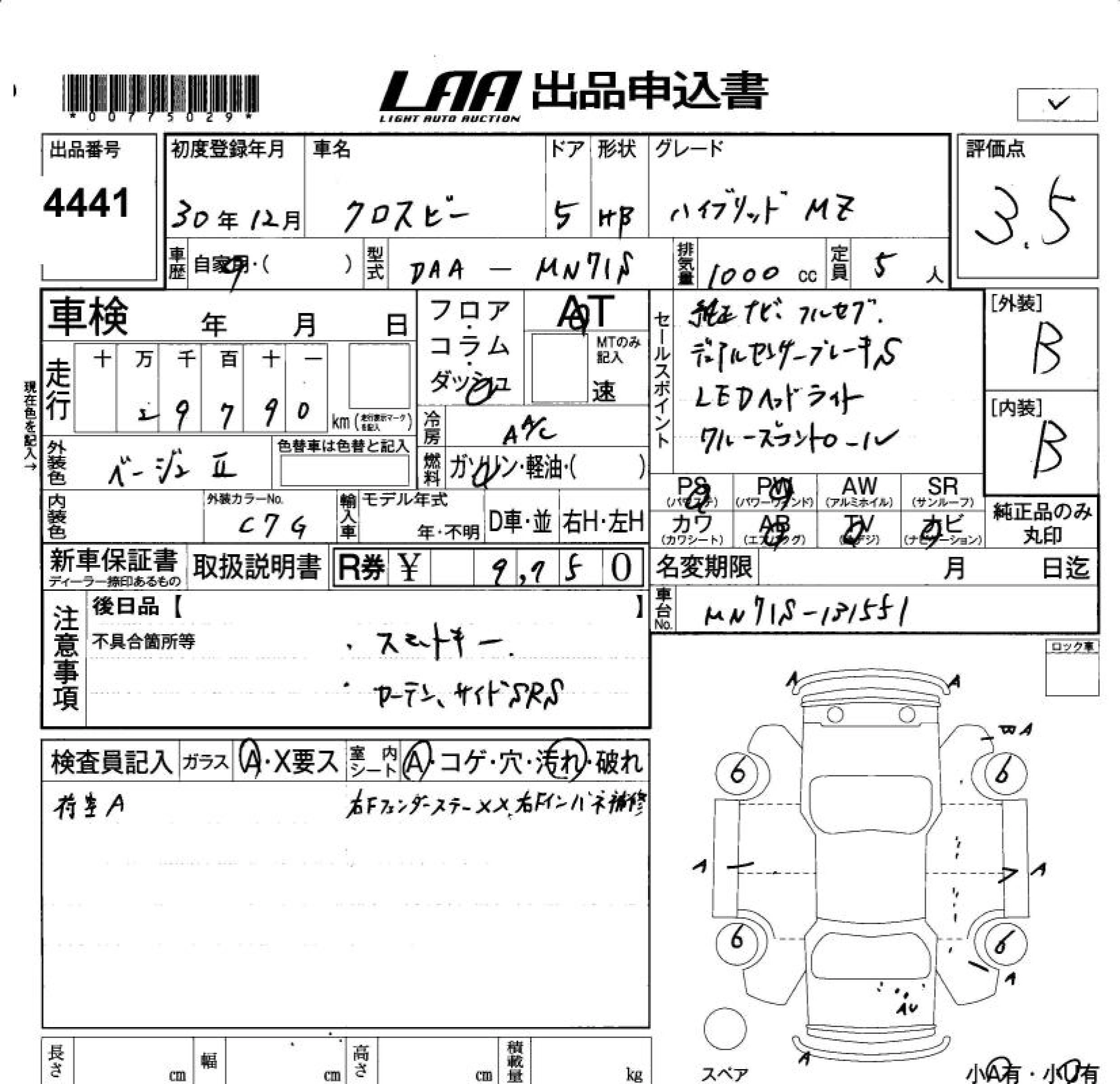 Статус не продан Лот 4441 Аукцион LAA Okayama Дата аукциона 23.01.2026