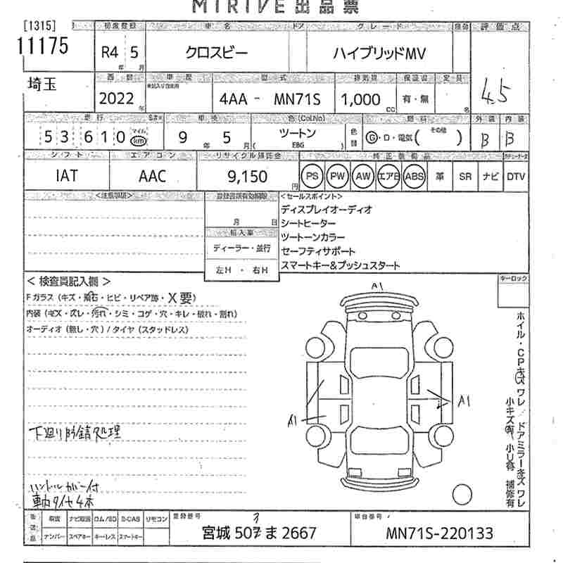 Статус выставлен на аукцион Лот 11175 Аукцион MIRIVE Saitama Дата аукциона 28.01.2026
