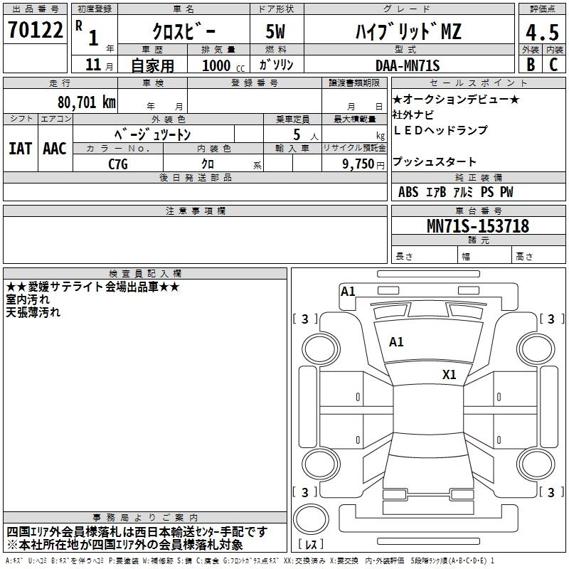 Статус выставлен на аукцион Лот 70122 Аукцион TAA Shikoku Дата аукциона 10.03.2026