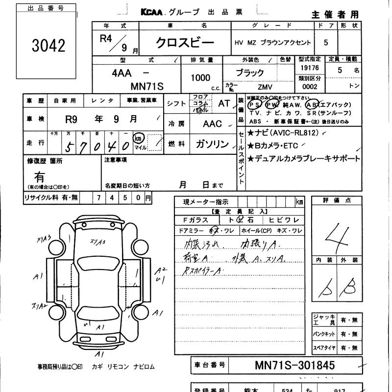 Статус не продан Лот 3042 Аукцион KCAA M Kyushu Дата аукциона 18.03.2026