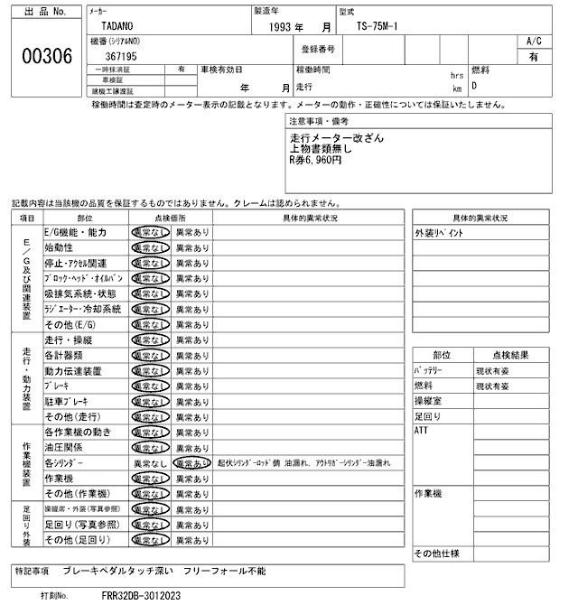 Статус выставлен на аукцион Лот 306 Аукцион ARAI Kenki Дата аукциона 09.12.2025