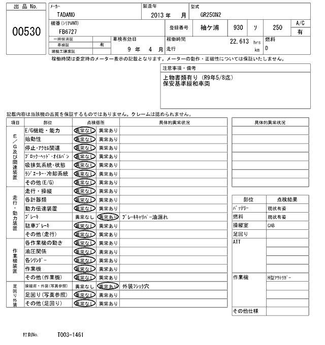 Статус выставлен на аукцион Лот 530 Аукцион ARAI Kenki Дата аукциона 27.01.2026