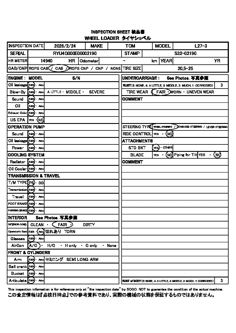 Год выпуска2004 КузовL27-3 Комплектация TIRESHOVEL
