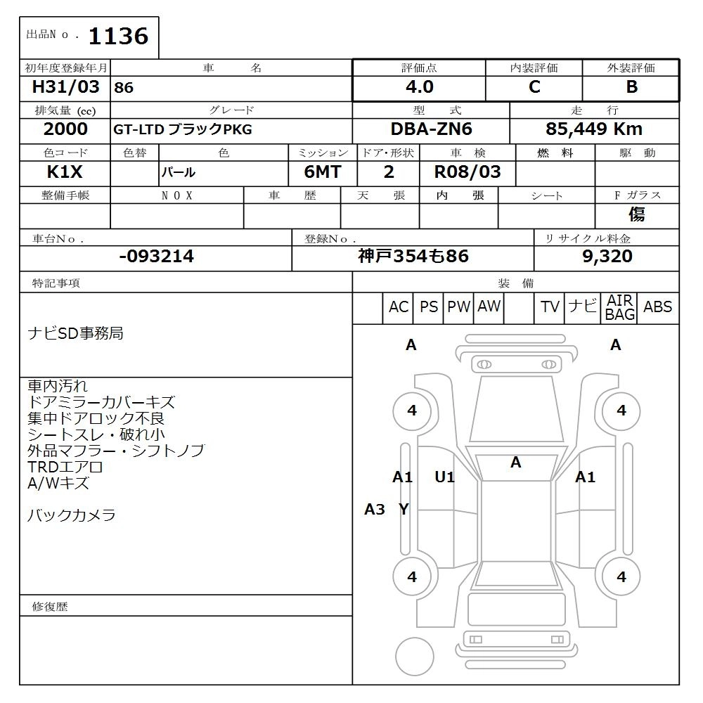 TOYOTA 86 2019 г., лот № 1136