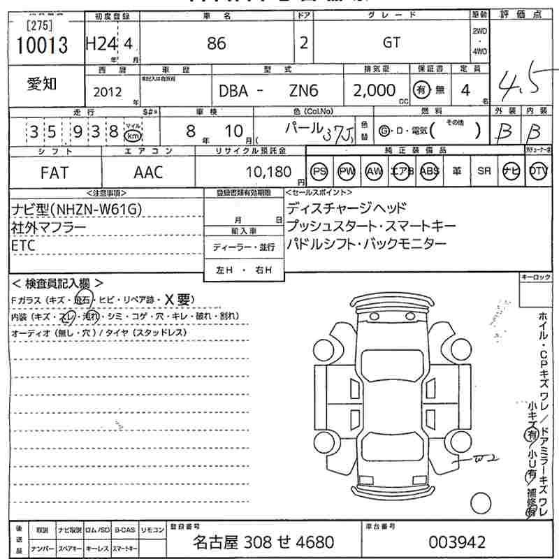 TOYOTA 86 2012 г., лот № 10013