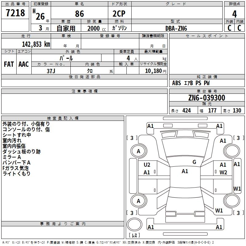 TOYOTA 86 2014 г., лот № 7218