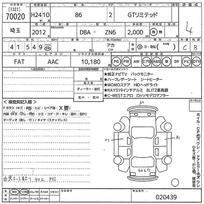 TOYOTA 86 2012 г., лот № 70020