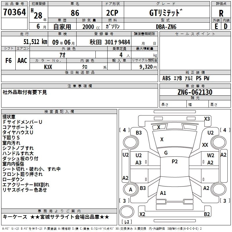 TOYOTA 86 2016 г., лот № 70364