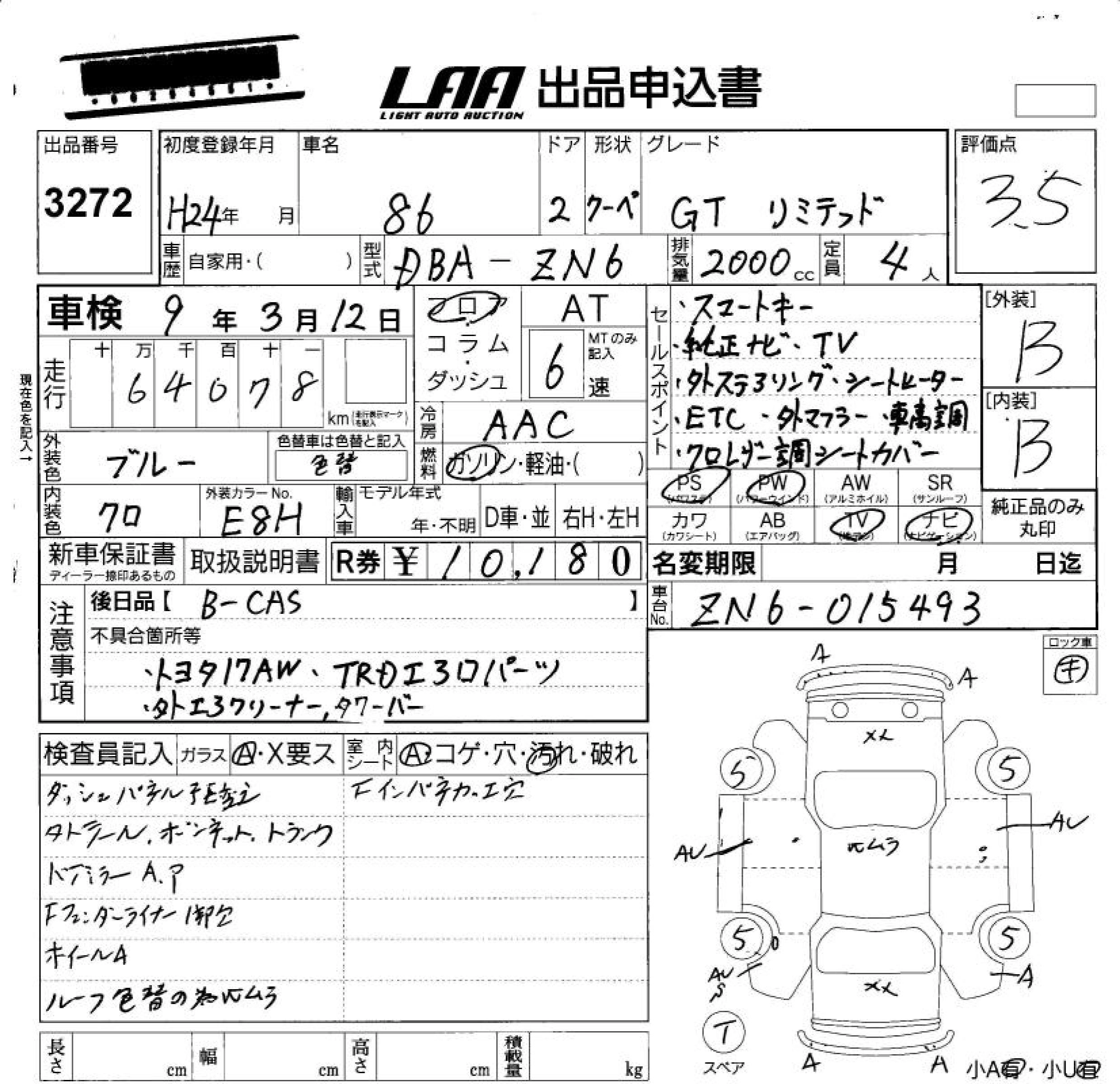 TOYOTA 86 2012 г., лот № 3272