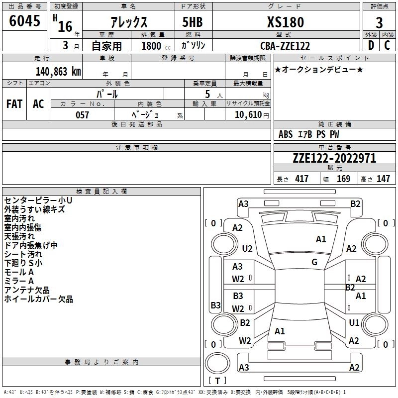 TOYOTA ALLEX 2004 г., лот № 6045