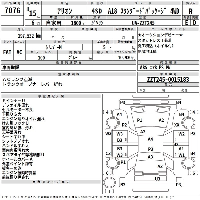 Год выпуска2003 Пробег 198 000 км КузовZZT245 КомплектацияA18 STANDARD PACK 4WD