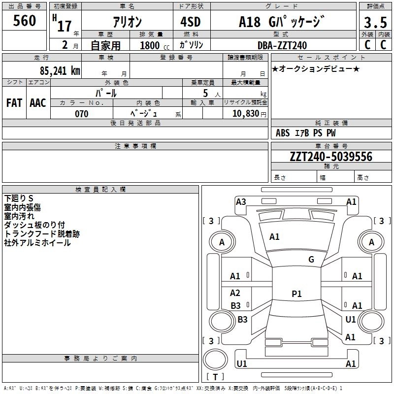 TOYOTA ALLION 2005 г., лот № 560
