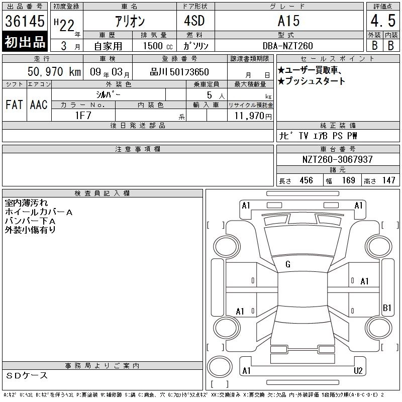 TOYOTA ALLION 2010 г., лот № 36145