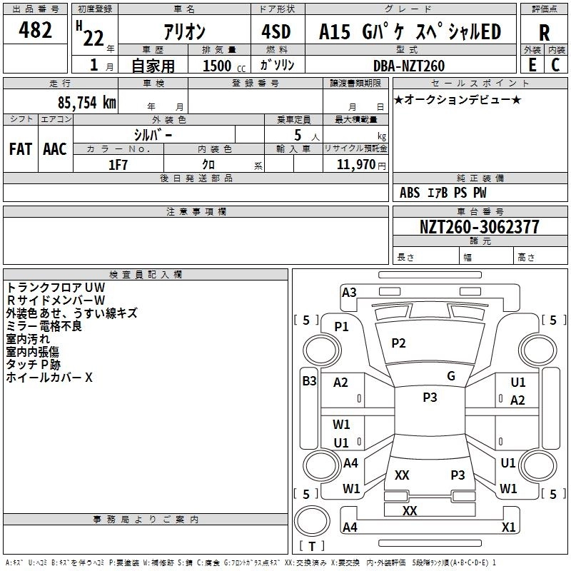 TOYOTA ALLION 2010 г., лот № 482