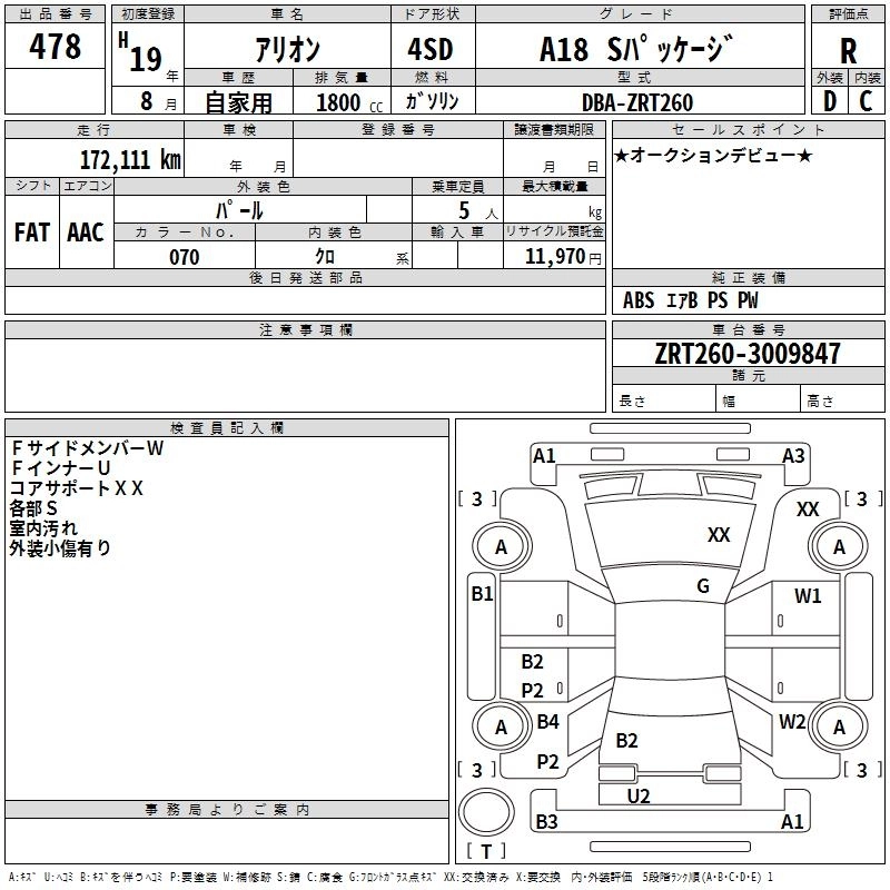 TOYOTA ALLION 2007 г., лот № 478