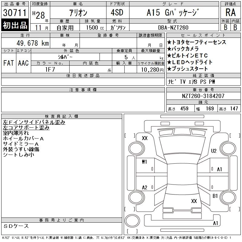 TOYOTA ALLION 2016 г., лот № 30711