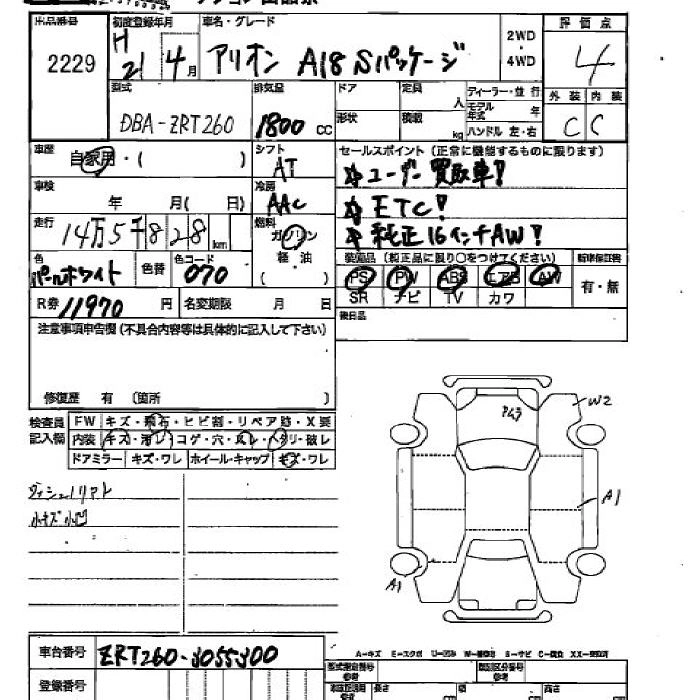 TOYOTA ALLION 2009 г., лот № 2229