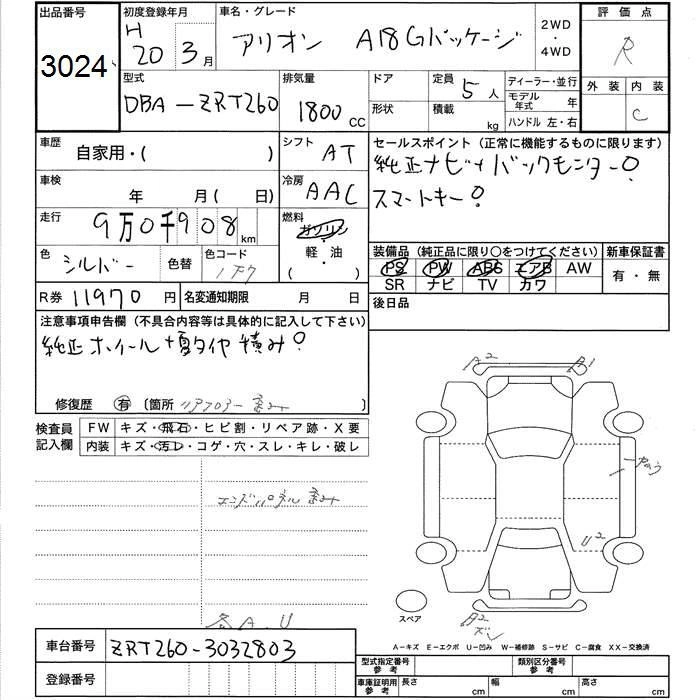 Статус выставлен на аукцион Лот 3024 Аукцион JU Toyama Дата аукциона 12.03.2026