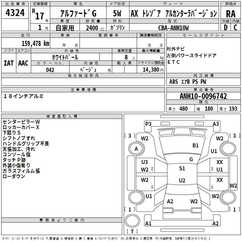 TOYOTA ALPHARD G 2005 г., лот № 4324