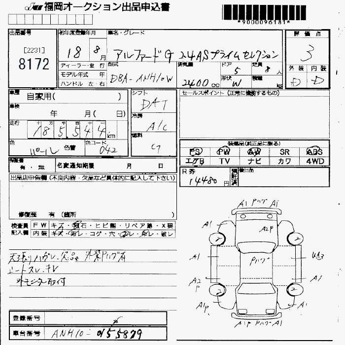 TOYOTA ALPHARD G 2006 г., лот № 8172