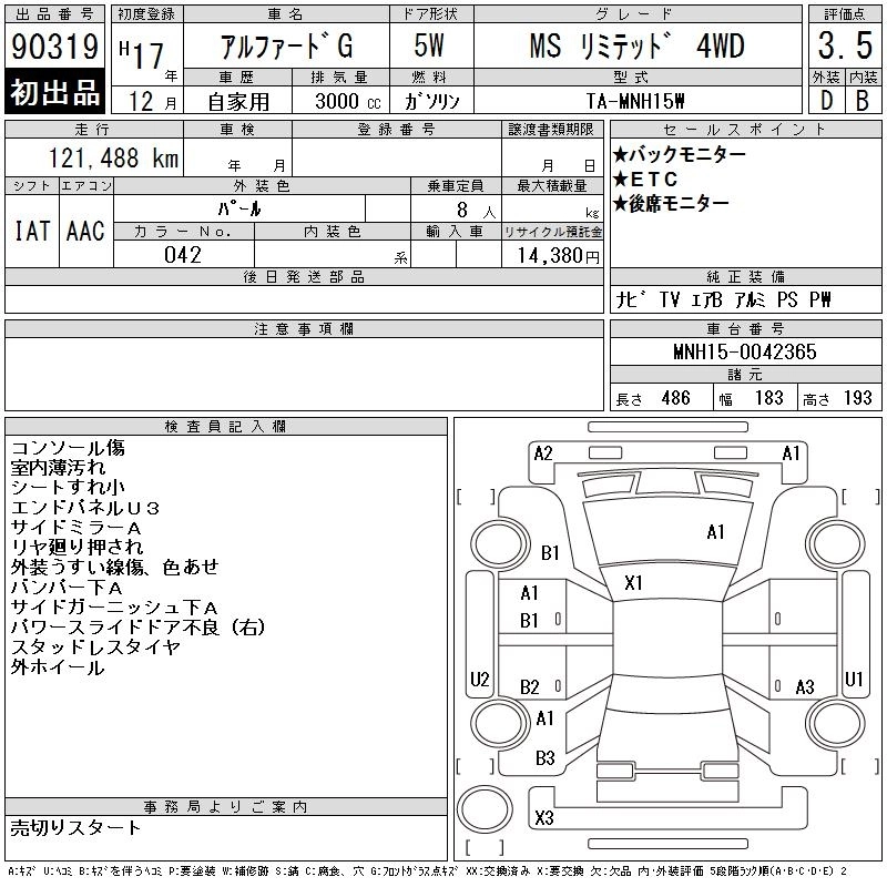 TOYOTA ALPHARD G 2005 г., лот № 90319